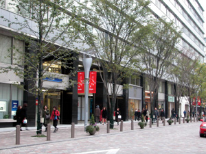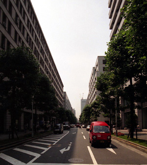 歩車道はグリーンベルトで分けられ、道路に面する店舗は銀行の営業室などだった。