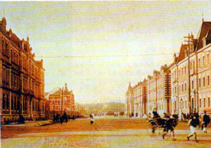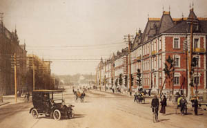 東京市役所前辺りから皇居方面を見る。(明治42年頃)