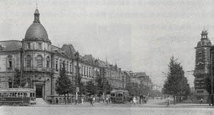 堀端の路面電車は明治36年に東京市街鉄道により敷設された。馬場先通りは大正9年開業。