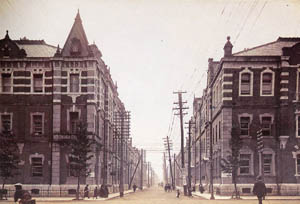 堀端(現日比谷通り)から馬場先通り方向を見る。(大正12年頃)