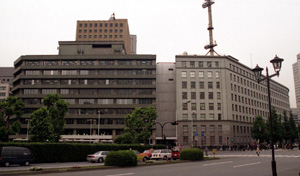 右手が旧館。現在は取り壊され、隣接敷地とともに大規模な複合開発が建設中である。