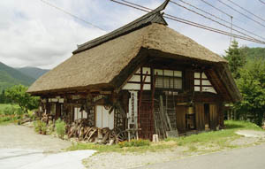 ![]() 大沢集落 ![]() 原集落にある民俗資料集古館 ![]() 大沢集落 かぶと造り民家が3棟ならぶ。 |