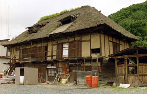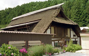 片品村は、群馬県北部、利根川の支流片品川上流の山村である。森林資源に恵まれ、木材や薪炭を産出している。 村を横断する国道120号線は日光金精峠へ、沼田街道は尾瀬を越えて(車道なし)只見へ抜ける。現在は、尾瀬への登山、日光へのドライブ、冬のスキーにペンション村など、観光が主産業である。 かつては各農家で養蚕が盛んに行われていた。その遺構は民家の屋根形状に見られる。このあたりでは、草葺の寄棟民家の屋根の妻側を切り落としたかぶと造り、平側の一部を切り落とした赤城型、平側の一部の屋根をつき上げた民家など、さまざまな形状の屋根改造を施した養蚕民家が、草葺のまま残っている。 |