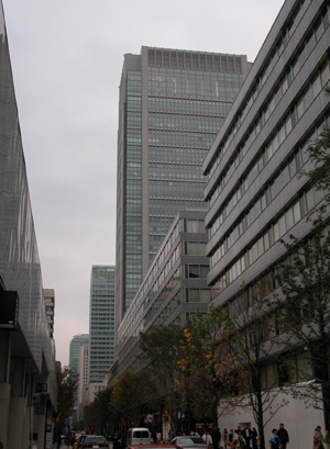 丸ビル、永楽ビルが超高層化した。左手は明治生命街区の工事中。